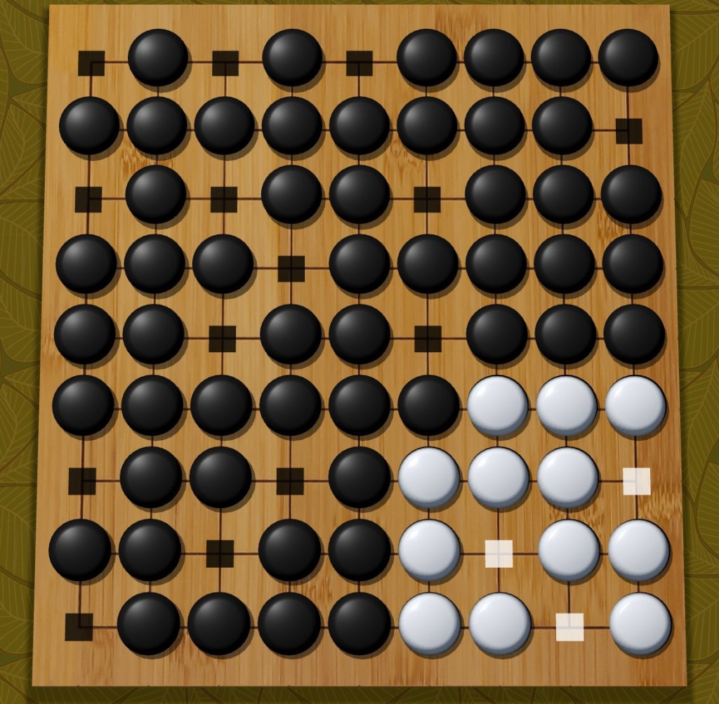 After the 12th move on a 9×9, it’s all about cutting your opponent off from connecting and growing territory. Sometimes that means letting them take your stones because there’s no way for you to connect. The endgame is about connecting creating eyes what you have until your opponent realizes they lost and gives up.