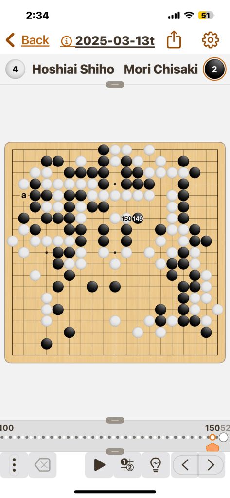 Here’s a game I had to play out completely because the poor dear didn’t have the good sense to know when they were beaten. Sure she lowered my points at the end but the game is not about points. It’s about winning losing or stalemate. Points don’t matter because you can’t take them with you. (It’s a metaphor yall…billionaires and oligarchs disagree but one of the biggest mistakes a KYU go player makes is focusing on taking stones and getting mad when they get their stones taken. This is how I have been beating that ass…Anyway I call this strategy A Dilettantes Great Wall.